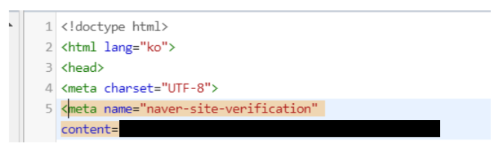 - HTML 편집 페이지에서 <head> 태그 내부에 복사한 메타태그를 붙여넣습니다.