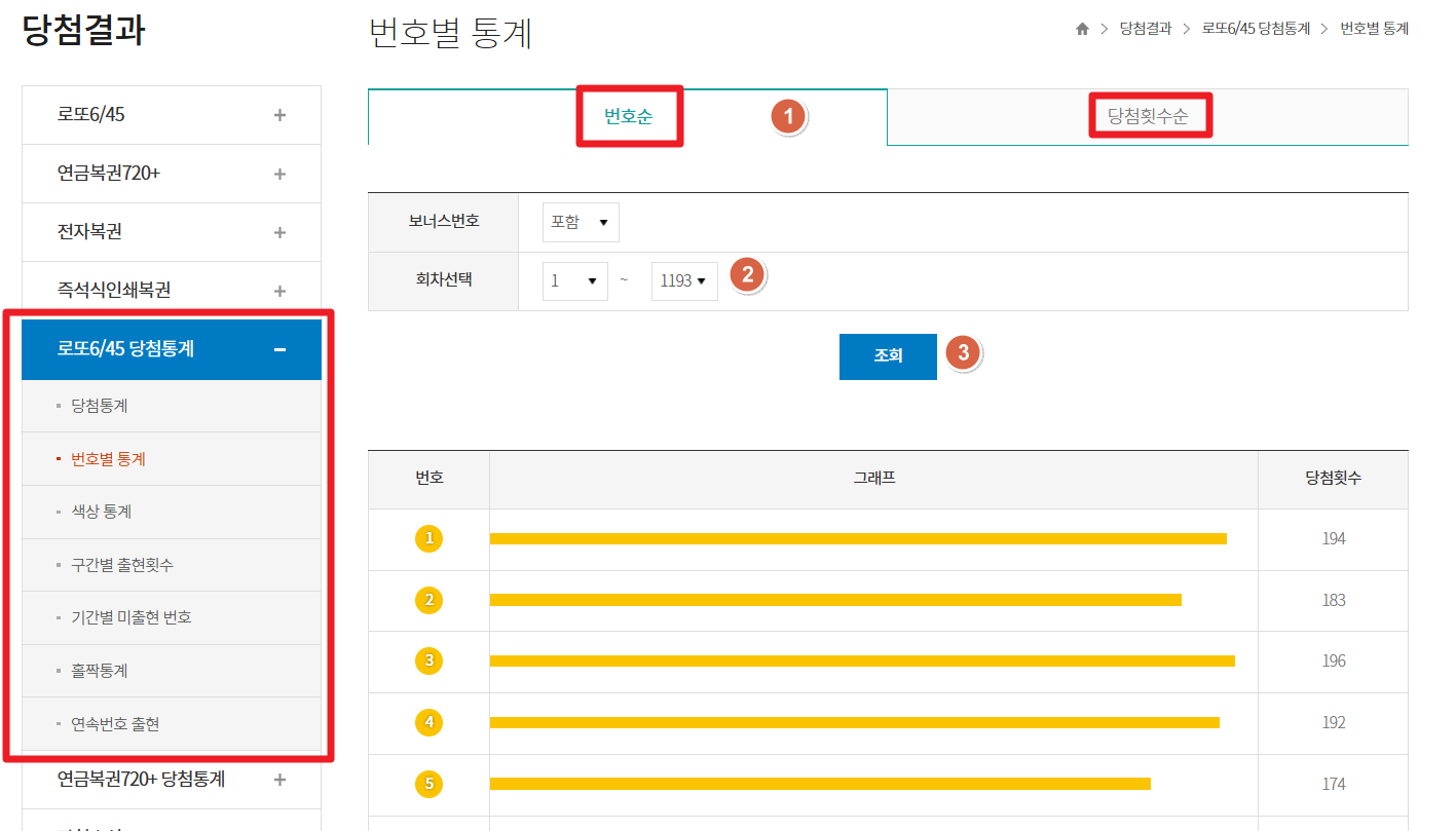 ✅ 로또 당첨 번호에 대한 깊이 있는 분석을 원하신다면 '로또6/45 당첨통계' 섹션 하단의 '번호별 통계'를 확인해 보실 수 있습니다. 이곳에서는 각 번호의 당첨 빈도와 색상별 통계 등 다채로운 데이터를 상세하게 파악하실 수 있습니다.