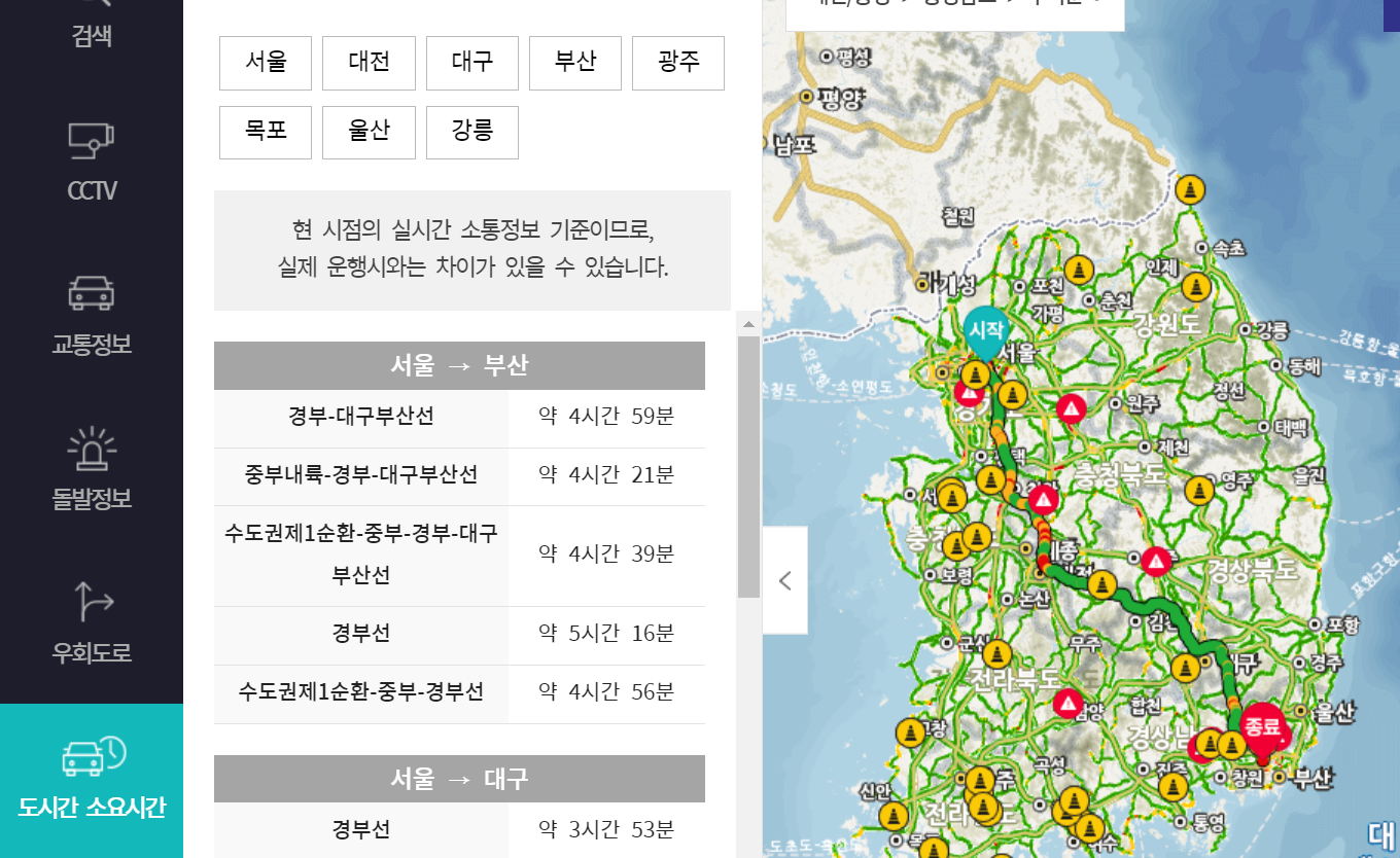 국가교통정보센터 웹사이트: 한국도로 실시간 교통 정보와 정체 구간을 조회할 수 있습니다.