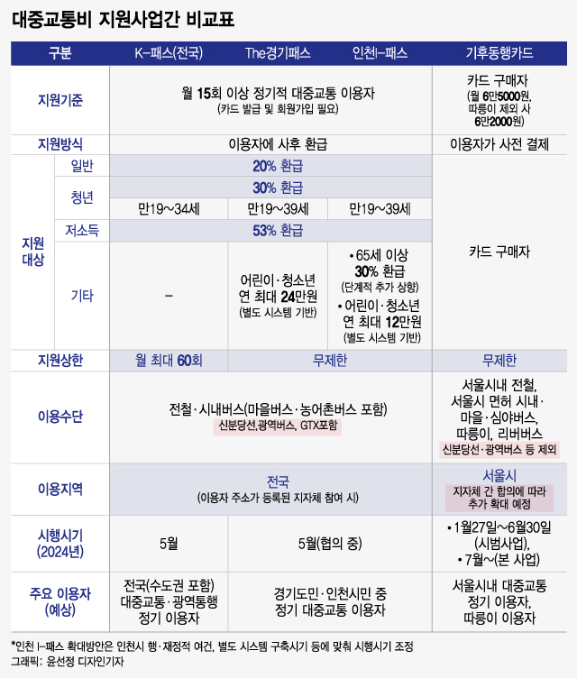 경기패스 vs 인천 i패스 vs K패스 vs 기후동행카드 (비교)